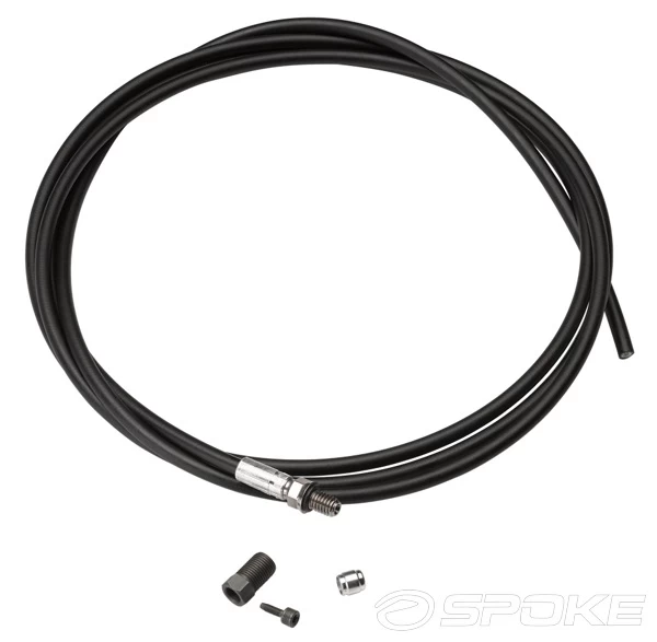 Replacement hose and end cap kit for Avid Elixir R, 5, 9, CR, X0 and CR Mag hydraulic brakes. The kit includes a hose (2 m) with a crimped end, an olive, a mandrel and a seal.