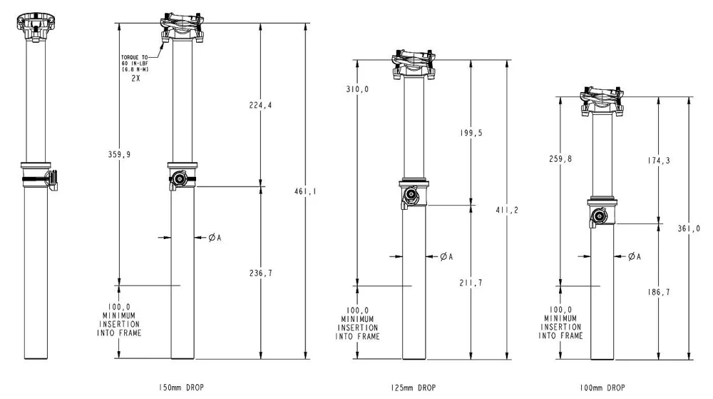 - possibility of disconnecting the control cable from the seatpost without the use of tools