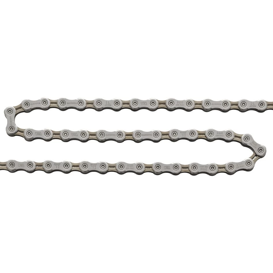 Road bike chain from the Shimano Tiagra 4600 set suitable for driving in a 2×10 speed configuration.