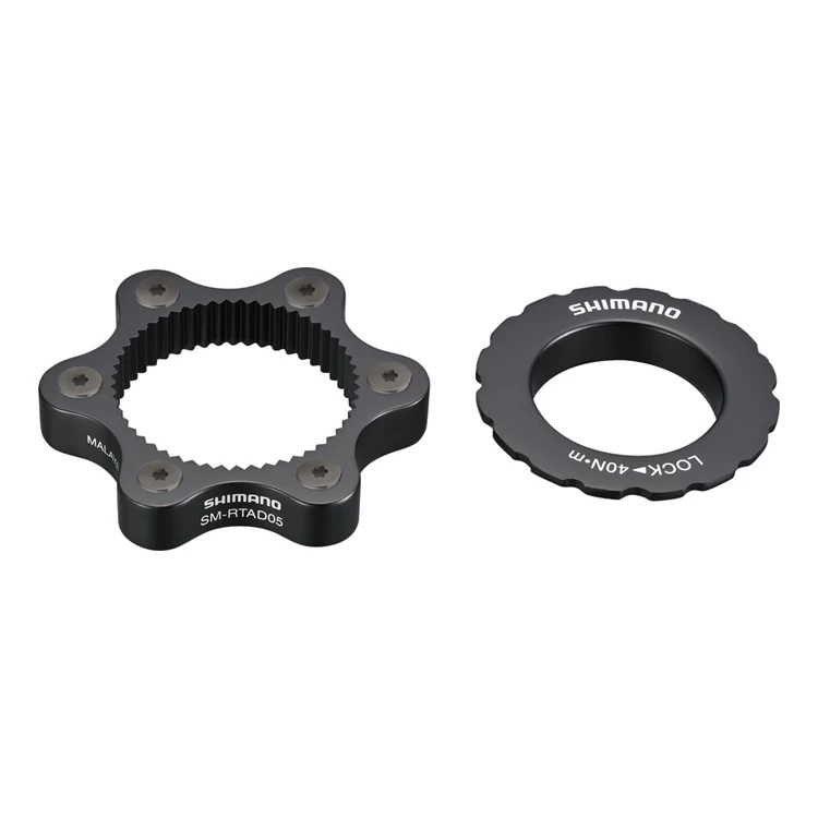 Shimano adapter for mounting a 6-hole wheel hub with centerlock mount. The adapter cannot be used with a disc with an aluminum carrier (eg SMRT86). For hubs with a fixed axis 15 / 20mm. Weight 60 g. Package contains one adapter with mother.