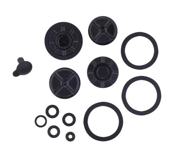 The kit contains: 2x piston (16 mm), 2x piston (15 mm), seals, O-rings and vent port cover.